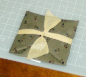 The swap packages are starting to arrive in earnest. Next week should see a deluge of packages as the arrival date is supposed to be February 25. These Inklingo swaps are such fun — and I’m always amazed at the variety of fabrics. One of the swappers packaged her little groups of triangles in the most marvelous way: