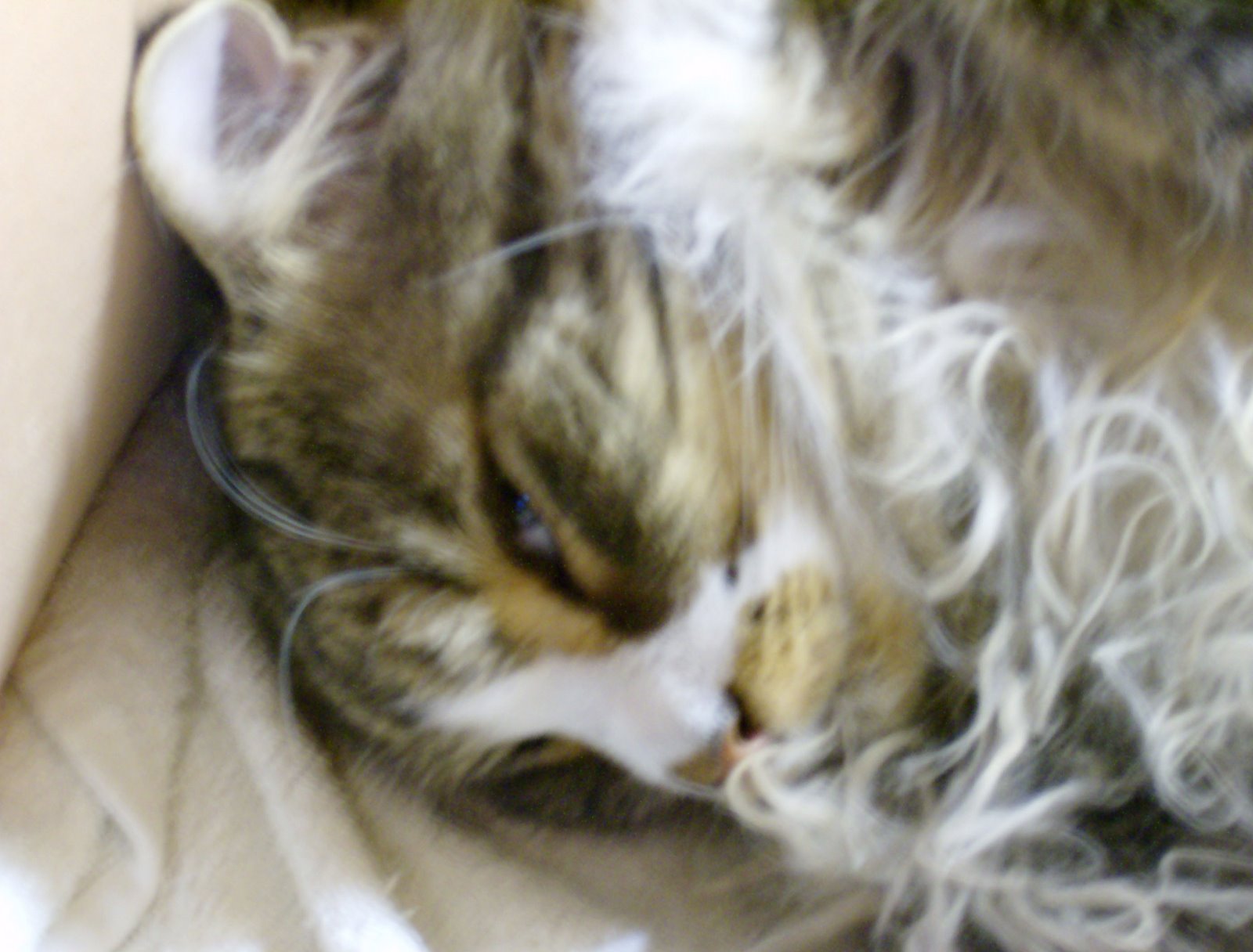 It’s quite a bit cooler here again and the cats are curled up in cozy spots sleeping. Smudge, as usual, was quite aware the camera was focused on him! 🙂