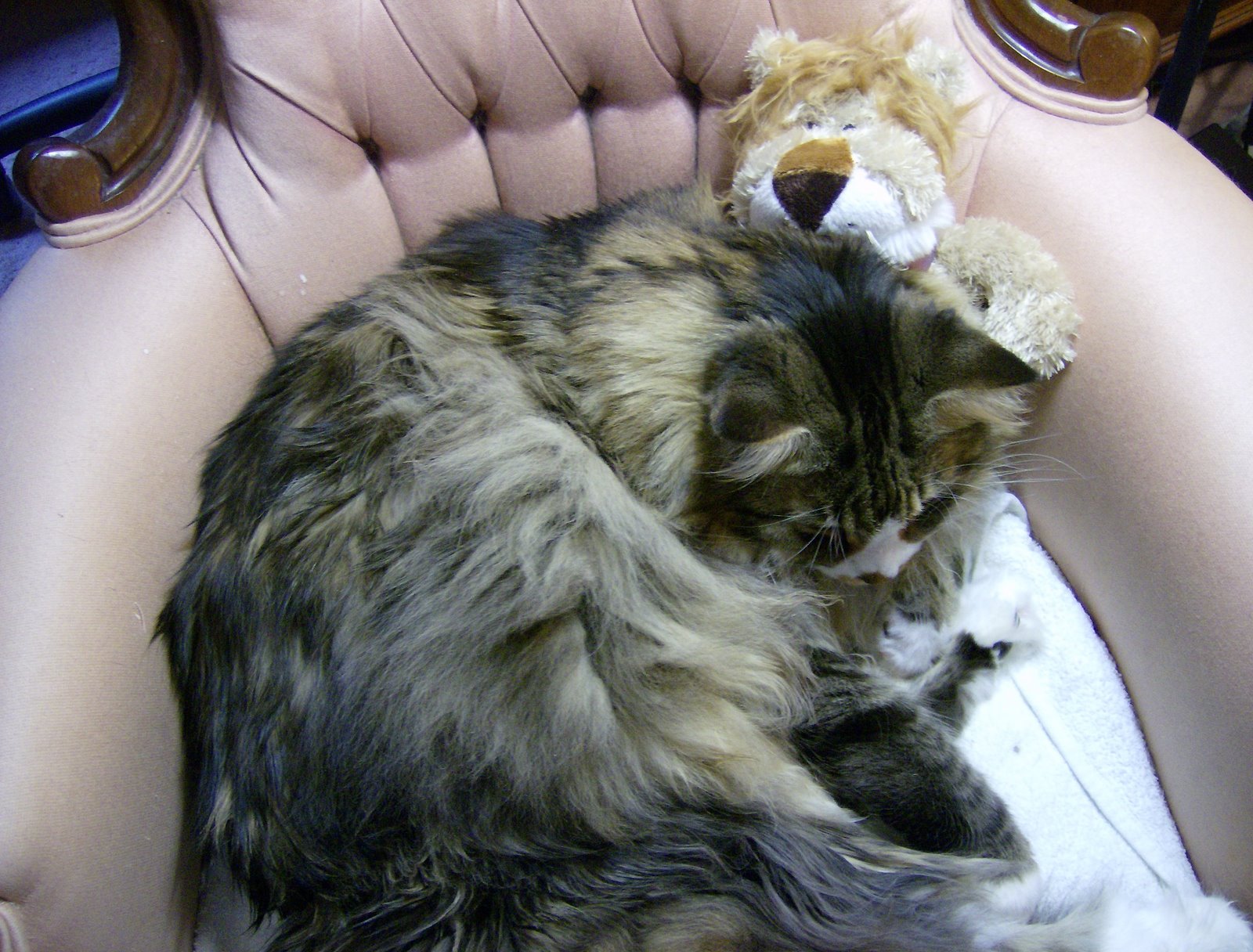 Oh this is my favorite!!!Cathi, Smudge is so so cute with his little lion. I love this picture. Tooo cute.Another Case of Love, *karendianne.