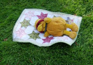 Daphne had a bit too much, we think. She had to have a rest in the glass before she stumbled back to her little quilt!