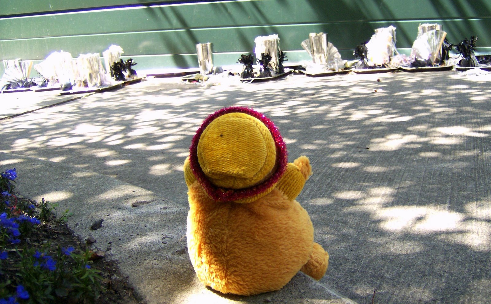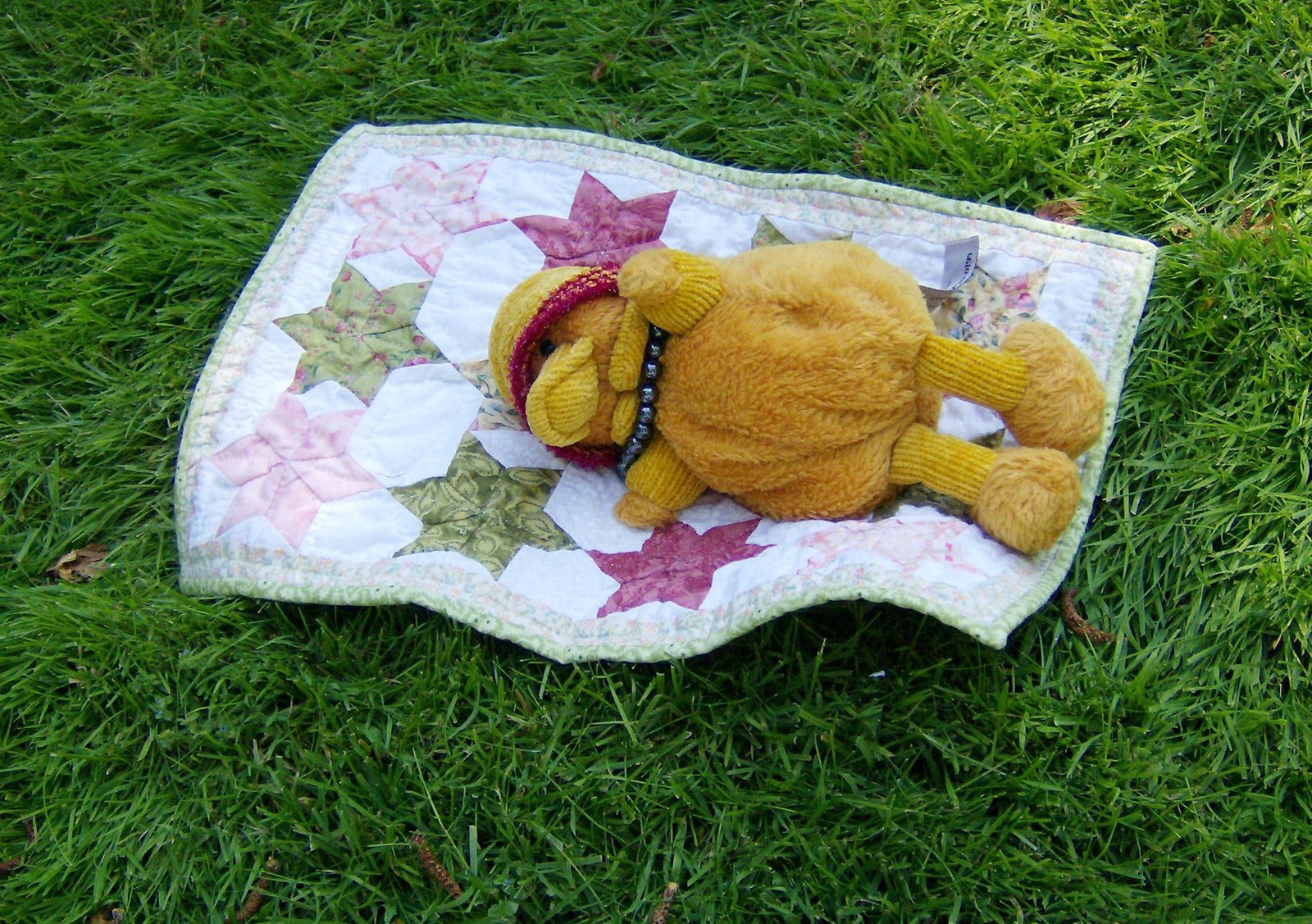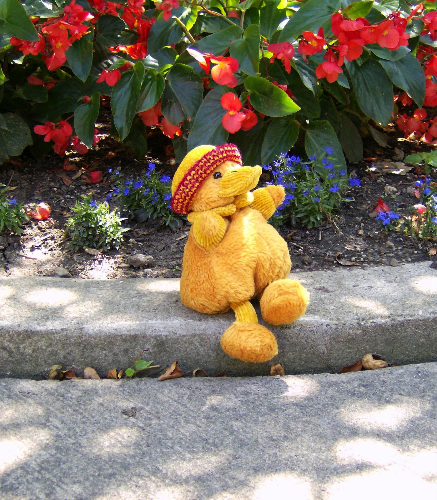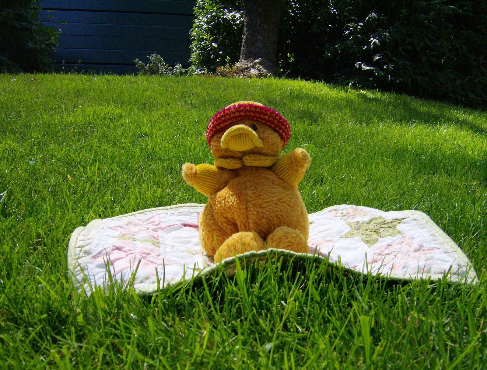 After a closer look at the bits she saw, she realized they were pretty dirty and trundled up the little hill to have an afternoon outing, sitting out on her little quilt.