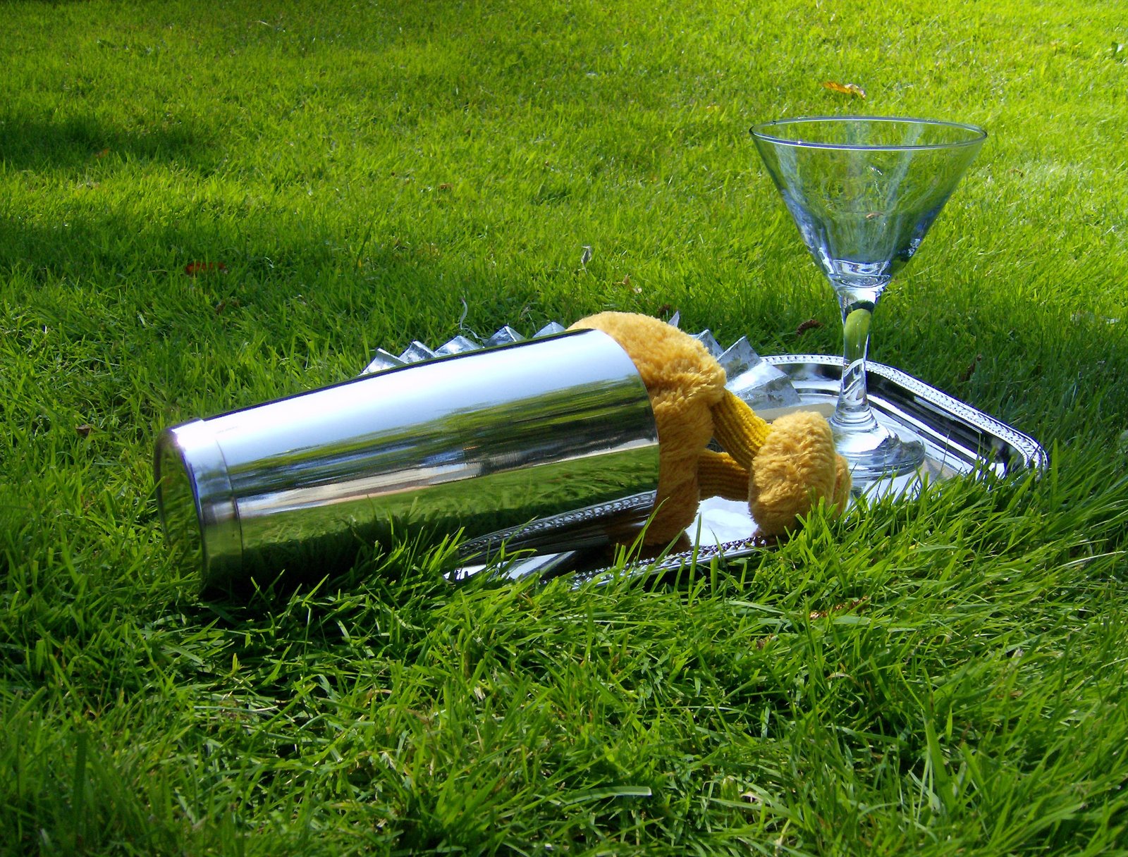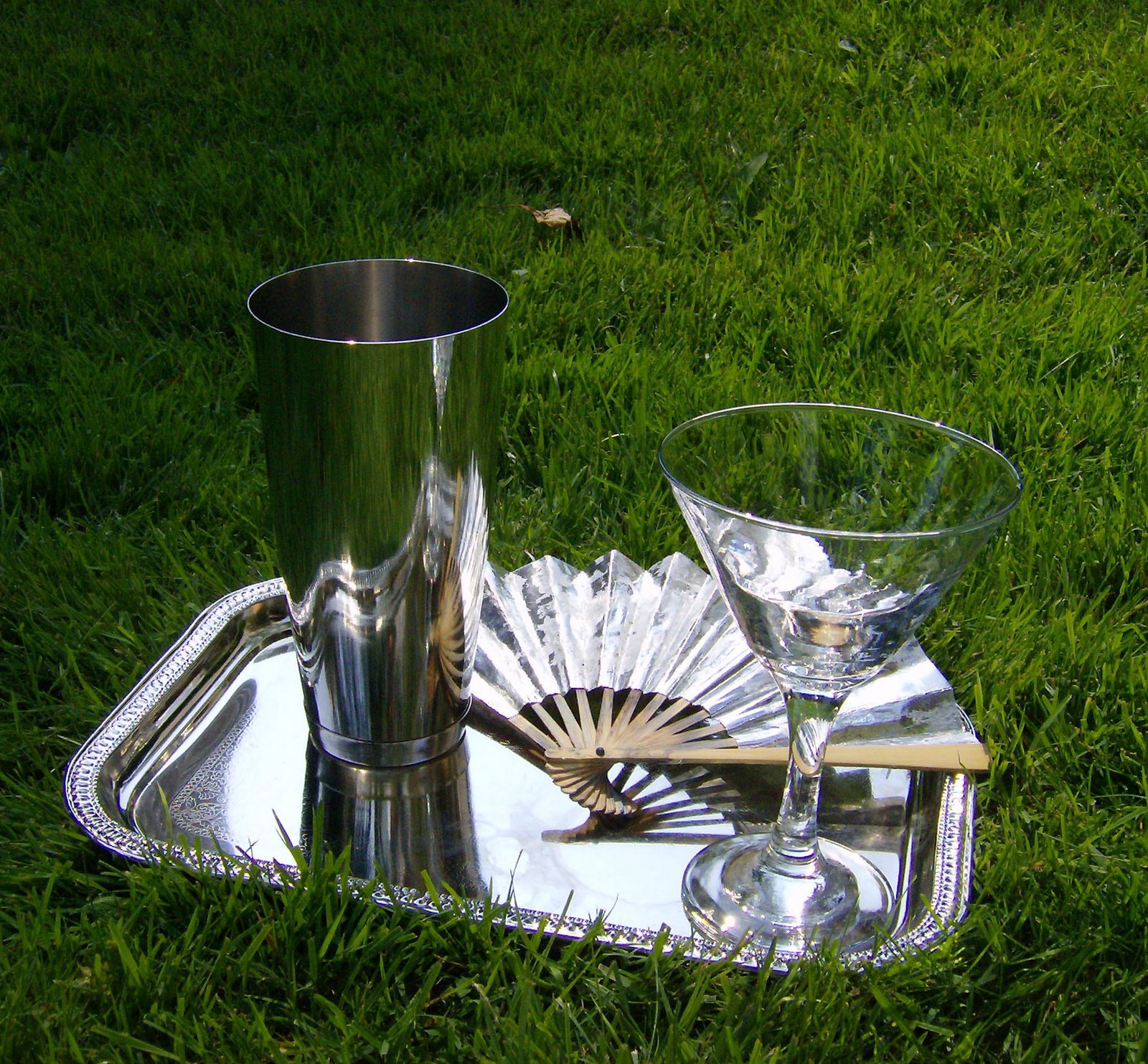Uh oh!! Look what she spied! A martini shaker and glass on a nice silver tray along with a fan!