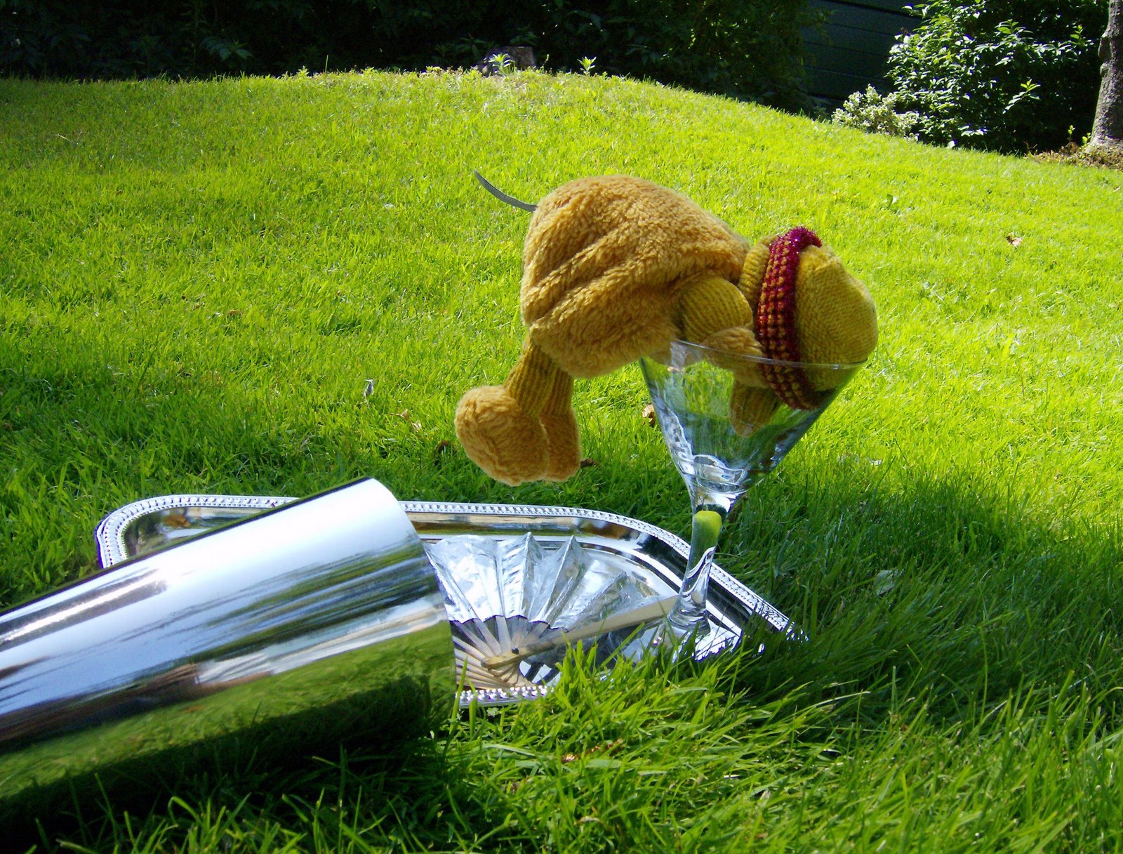 Daphne had a bit too much, we think. She had to have a rest in the glass before she stumbled back to her little quilt!
