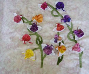 The third option is this — another folded fabric flower, but much smaller than the orchids. I would make them in a variety of batiks so not all the flowers would be the same colour as they appear to be here.