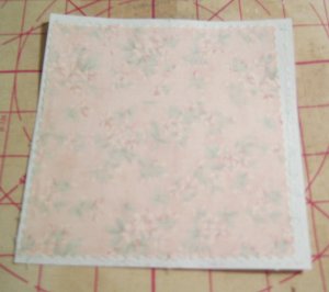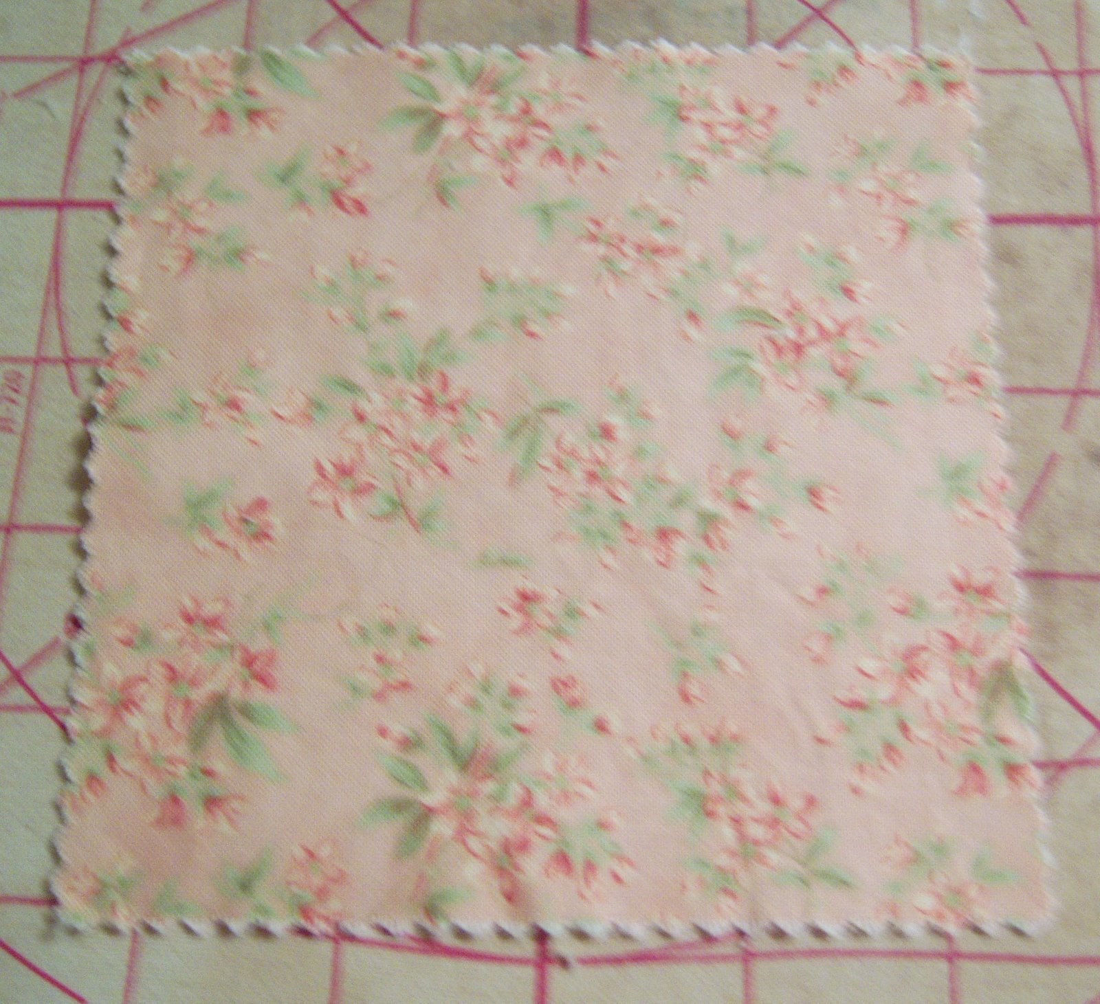 To give a really short explanation of how to stabilize fabric for printing — first I iron the charm. This is the charm, right side up.