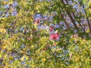 Then I noticed this tree and the little patch of red leaves in amongst the mostly still green leaves really caught my eye.