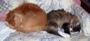 And a huge treat for us — the two boys curled up together. We rarely see them do this.