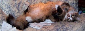 1. LOL that’s definitely a request for a tummy rub!!! I have to put my guy in the laundry room tonight before the trick or treaters show up – the constant ringing of the doorbell really frazzles him. He’s already eyeing the jack-o-lantern with a bit of a glare – I think he knows what’s coming! πŸ˜‰