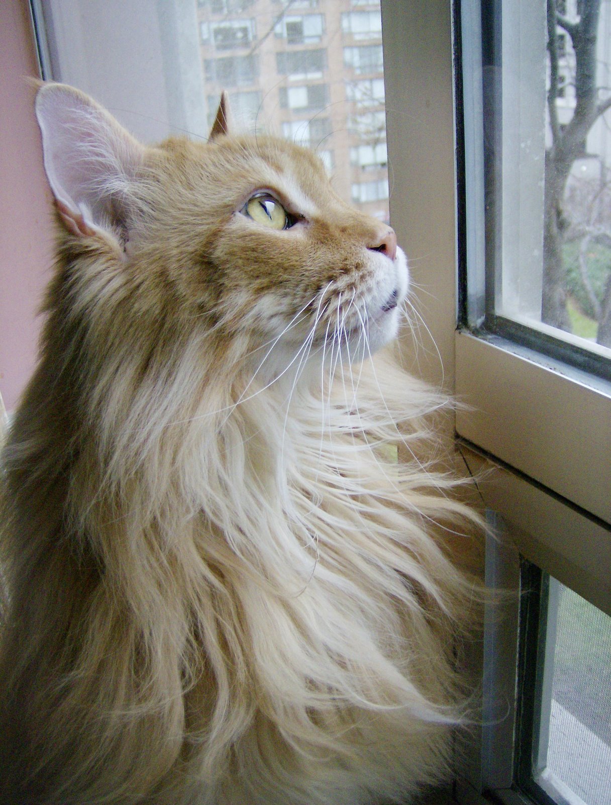 However, today it was quite windy and the boys were very busy watching the few remaining leaves flying by the window. Lester was intent: