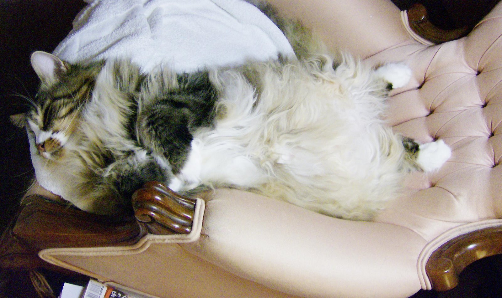 Smudge really knows how to relax. It’s the front paws that get me — and he’s sound asleep in this shot.