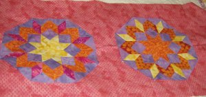 The gold fabric I showed yesterday to set these blocks just wasn’t quite right. What I’m looking for is sizzle, sort of a visual heatwave after the long winter we have had.
