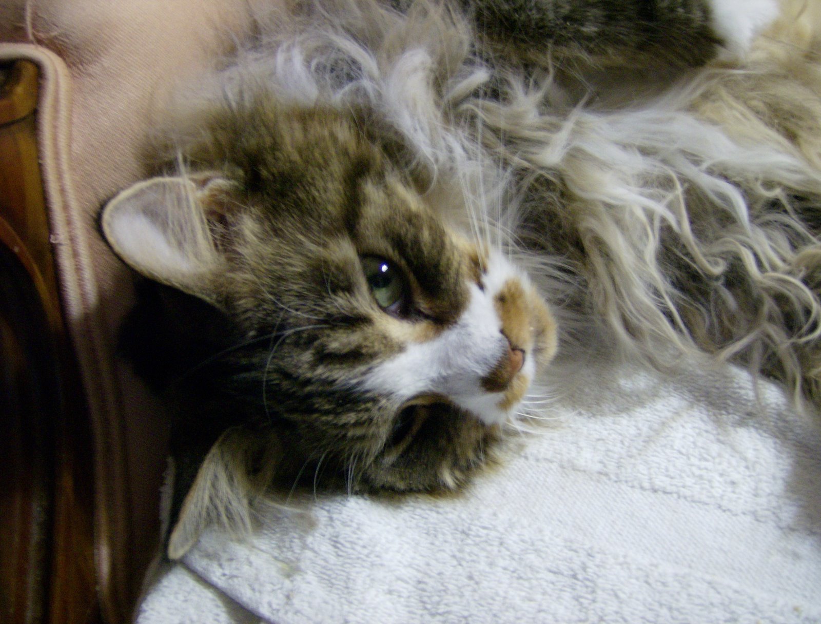 I would have a hard time picking the fabrics. This is such an intimidating block.Is Smudge ever all the way awake? Does he get perky when you fill his dish? I think I get sleepy just looking at pictures of him!