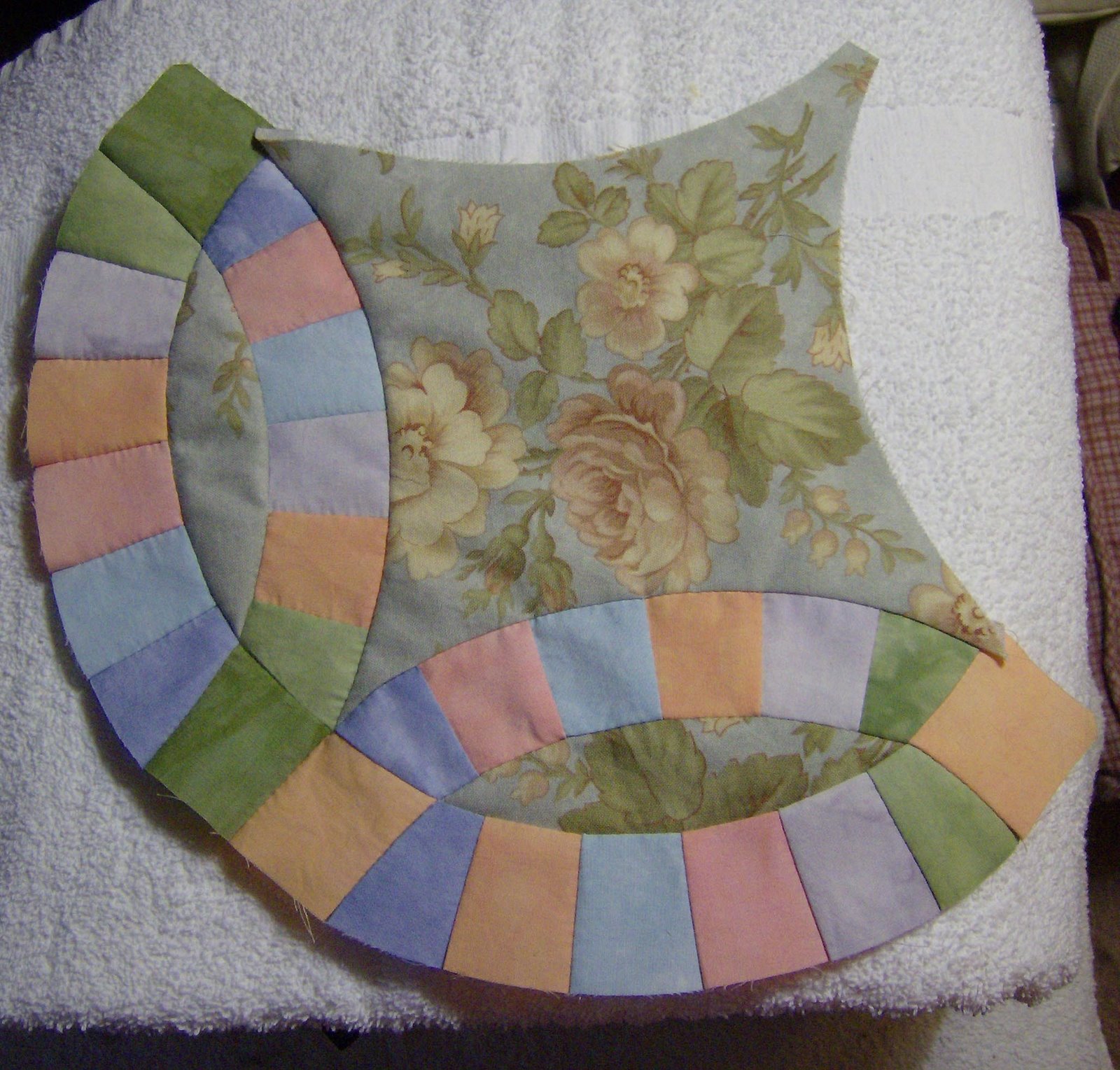 The very first quilt I ever tried, after taking a ho-hum course in the 70s, was a double wedding ring quilt. I never knew it was one of the hardest to make, and that you shouldn’t use sheets for the top. This was back in the days of cutting templates from cereal boxes, which of course, didn’t hold their shape.It was supposed to be for my sister’s wedding–which was over 30 years ago. I think I finally threw out the fabrics and stuff about 10 years ago.This actually looks doable!