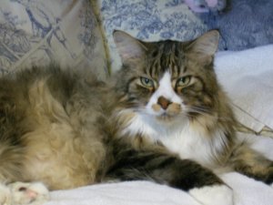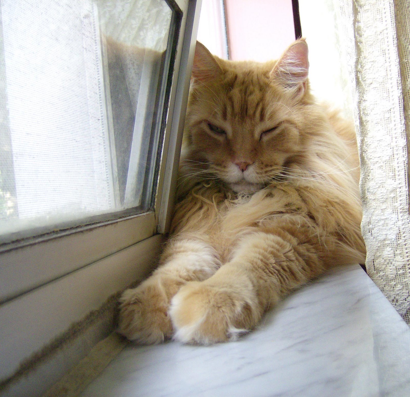 And Lester in his favourite spot — on the windowsill. He stretches right out and shows off his lovely big paws!