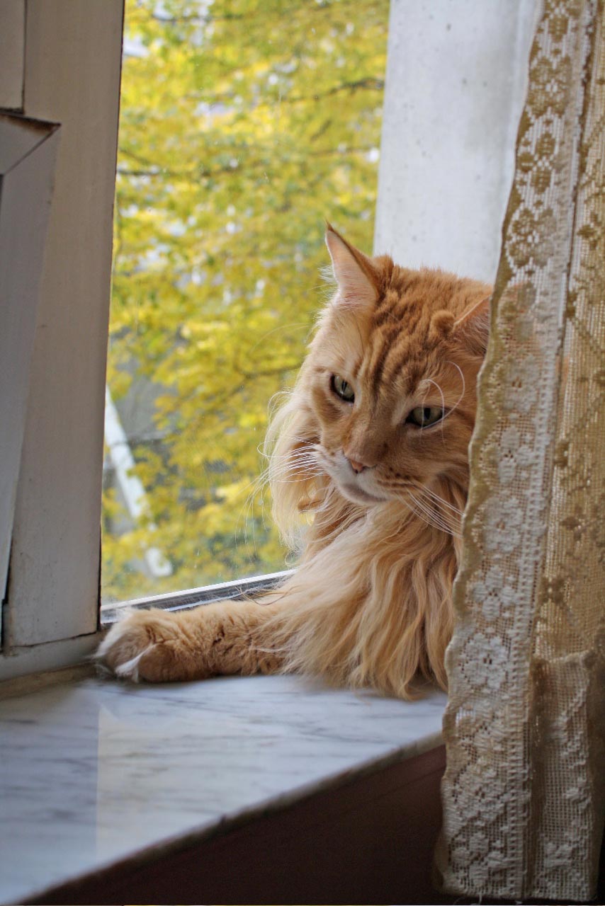 Lester resting on the windowsill after another busy afternoon of leaf watching.