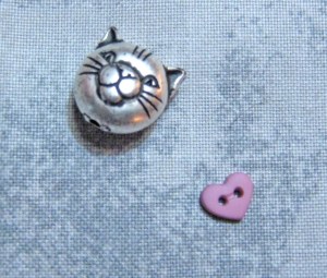 And just because I think they’re so adorable — a close-up of one of the little heart buttons and the kitty charm: