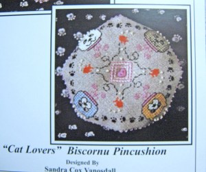 This time she really spoiled me!! I had seen this pattern for the Cat Lovers biscornu online and was absolutely thrilled when I saw the package contained this:
