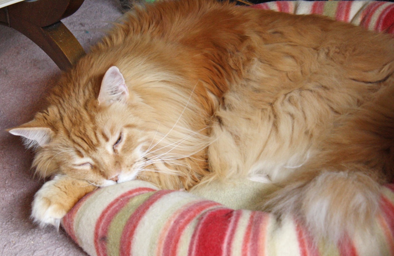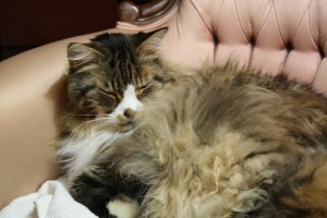 It was a grey day again, though, and both cats found good spots to curl up.  Smudge on the chair.