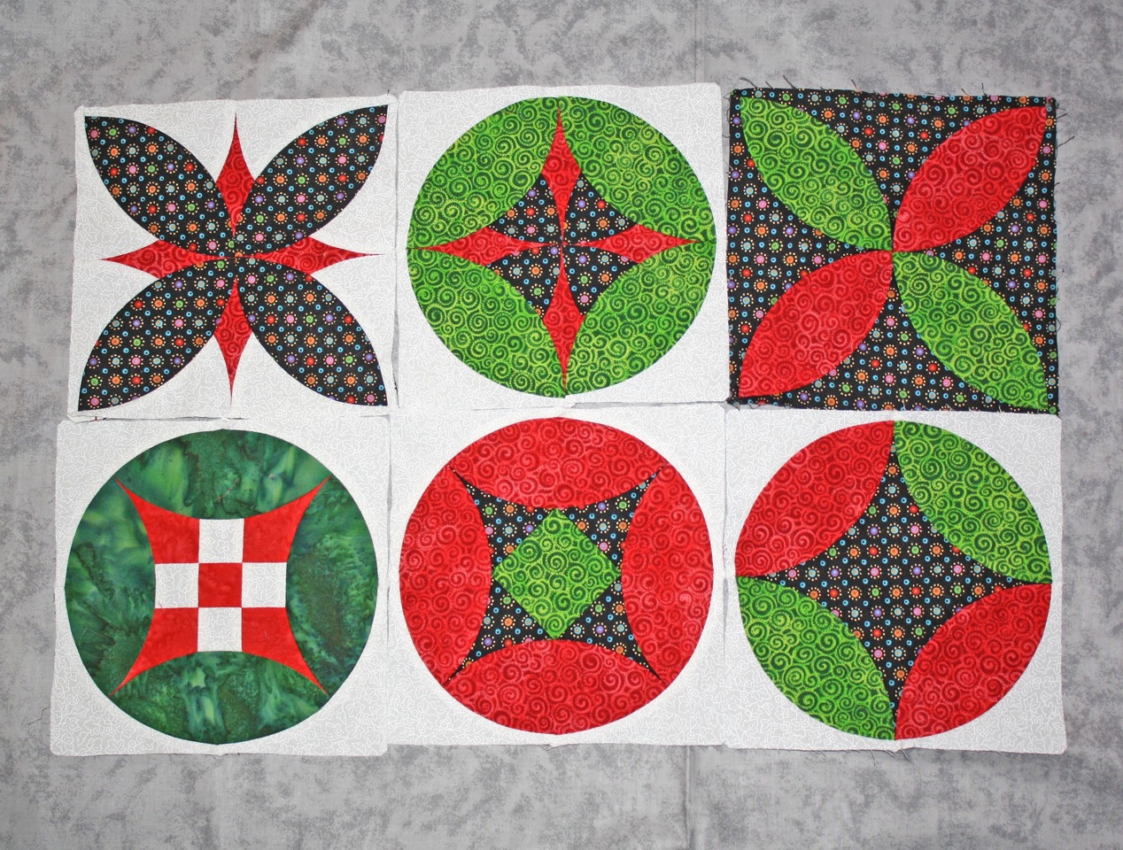 One of my favourite things is to play with blocks that have curved piecing.  There’s something I find immensely satisfying about stitching a perfectly curved seam.   I made these six blocks back when the Orange Peel Inklingo collection came out and design ideas have been floating through my mind.  The six blocks in the picture above are going to be made into a Christmas table topper, I think.  I may add 3 more blocks just to make it a bit larger.