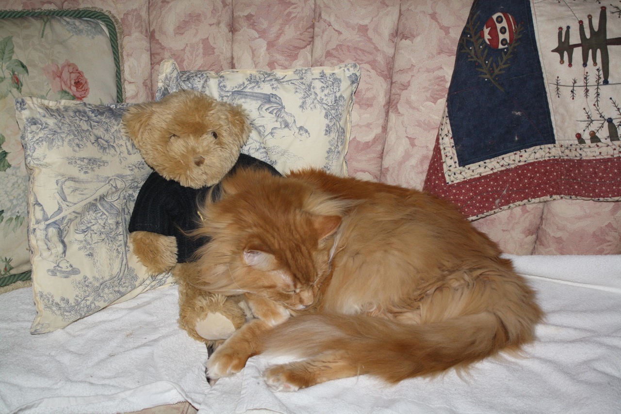 Lester wasn’t interested at all. He was happily asleep curled up with a teddy bear.