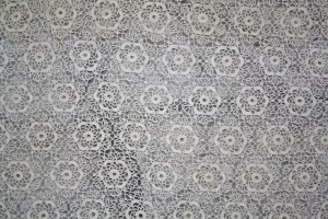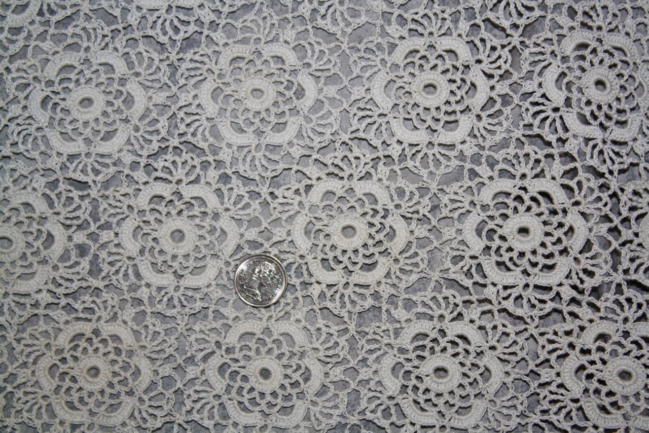 In my pre-quilting life, I used to do a lot of lace crochet. Over the years I made lace tablecloths for my mother and aunt and had started this one for myself. Crocheting was the first craft that my hands rebelled against and I had to put this away when it was the size of a large rectangular shawl. I’m thinking of trying to finish the last row and perhaps use it as a very lacy dress-up shawl when the occasion warrants. There’s a dime next to one of the motifs in the next picture. Lace was my favourite thing to crochet and I had great plans to make lace window treatments.
