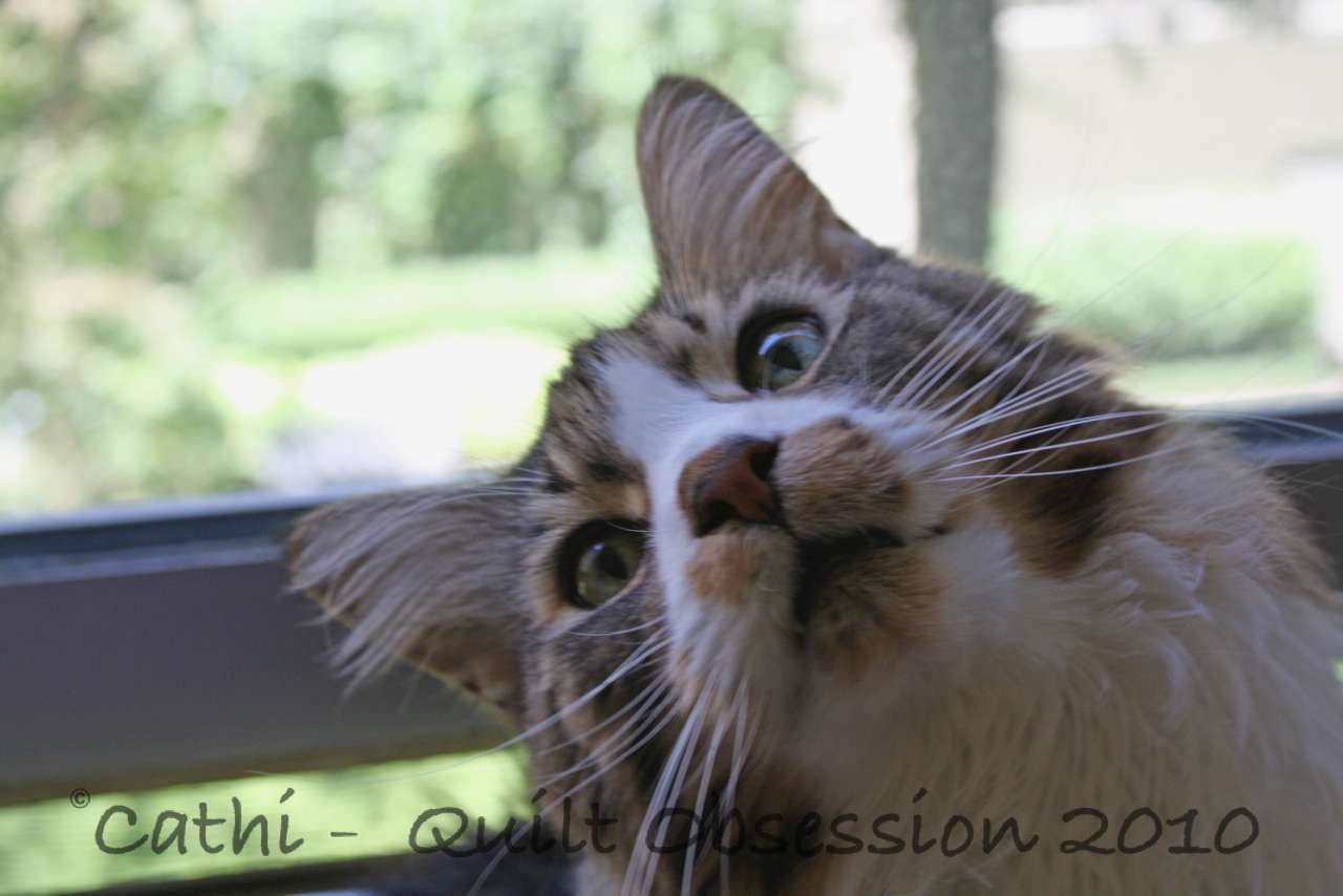 6. I love that look on Smudge’s face! That little quilt is going to be so pretty. And we got a small thunderstorm east of you around noon yesterday – with a bit of rain finally.