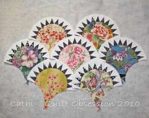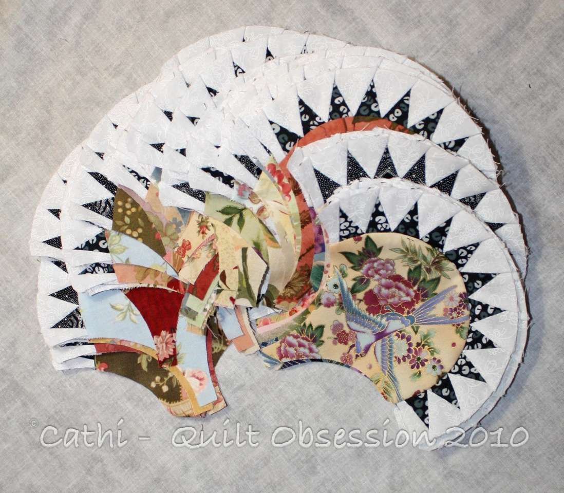 This is going to be one gorgeous quilt! 🙂 You sew so quickly Cathi you put me to shame. I spent the day out today at a quilty workshop working on sewing the sashing on my one and only clamshell block. I managed one only, LOL… of a 5 section sashing strip. It was one of the bottom ones with the outward going curve of the sashing going into the inward one of the block. What a futter! The bits between where you have to clip into the inner points was a pain. I have started the second bottom one this evening and hope to have it done over the next few days…. if’n it kills me, LOL… The top sashings were okay.