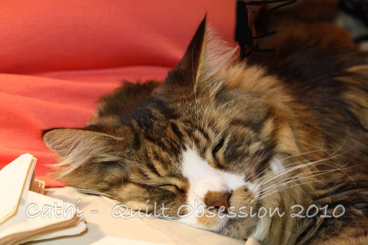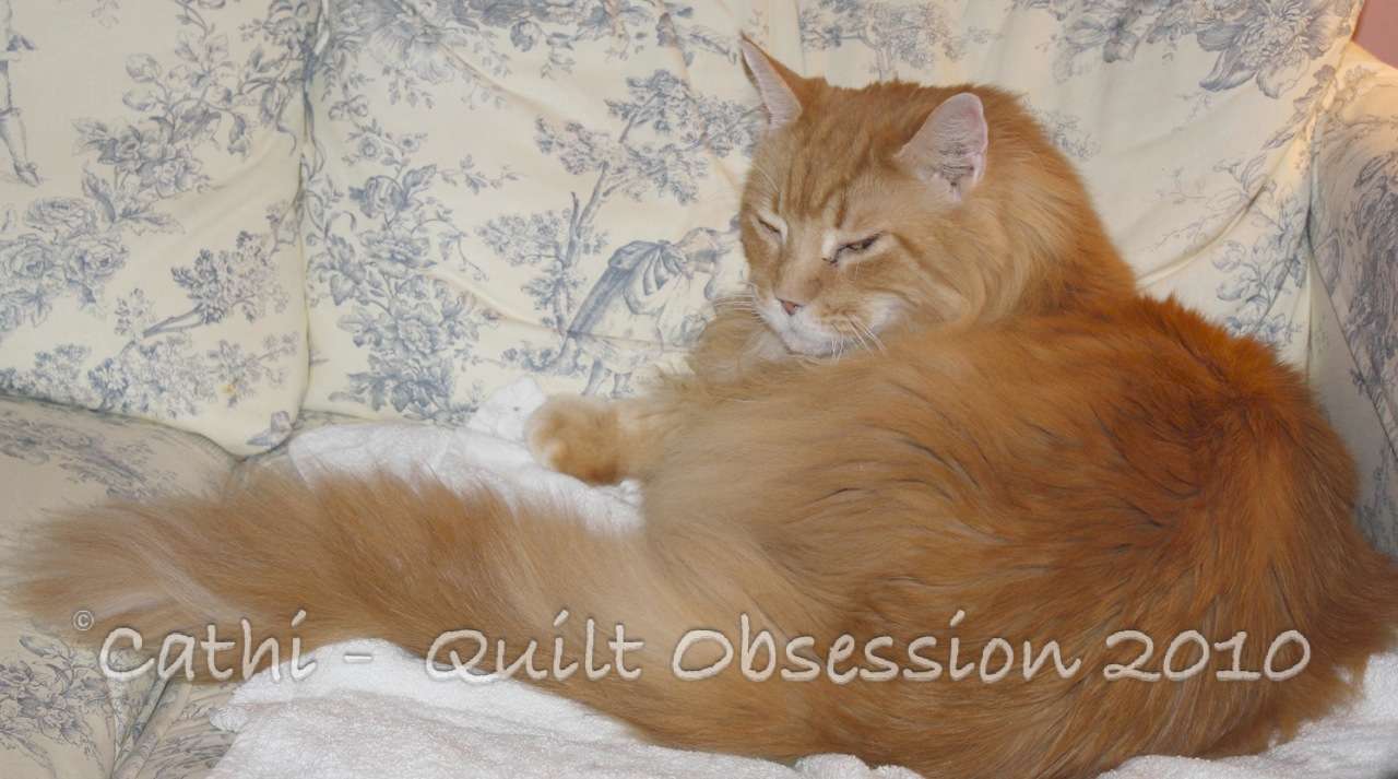 OMGosh that is beautiful!! I just love oriental fabrics. Ol’ Smudge looks VERY comfortable LOL.