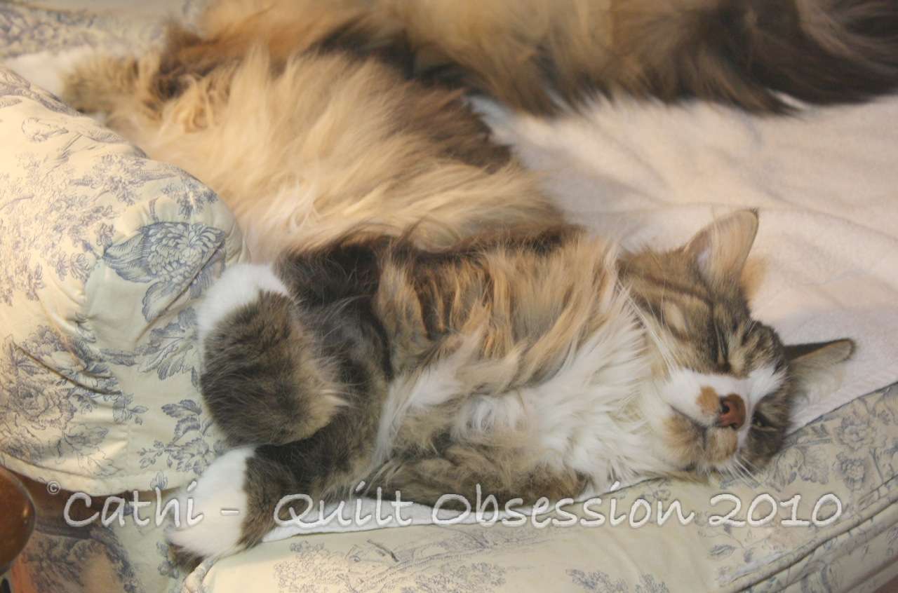 1. I just love the deep saturated colors in this block. Fabulous!! Don’t you just hate when you can’t find something? Unfortunately, that happens to me more than I care to admit. I am sure you will find it though! Both kitties look quite happy and content today!