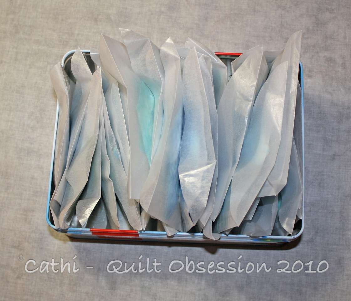 All the pieces for the remaining Stormy Seas blocks are sorted and in individual glassine envelopes.  Something tells me I need to find a larger box for them or get half a dozen of these blocks made up rather quickly.  The box seems as though it’s rather overflowing at the moment.