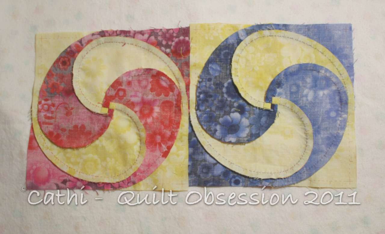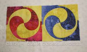 I just couldn’t resist and had to see how the Yin Yang block would look in brights as well as the spice fabrics. These blocks may be the beginning ones for a stitching book cover or, who knows, maybe I’ll make a small Yin Yang quilt of primary colours.