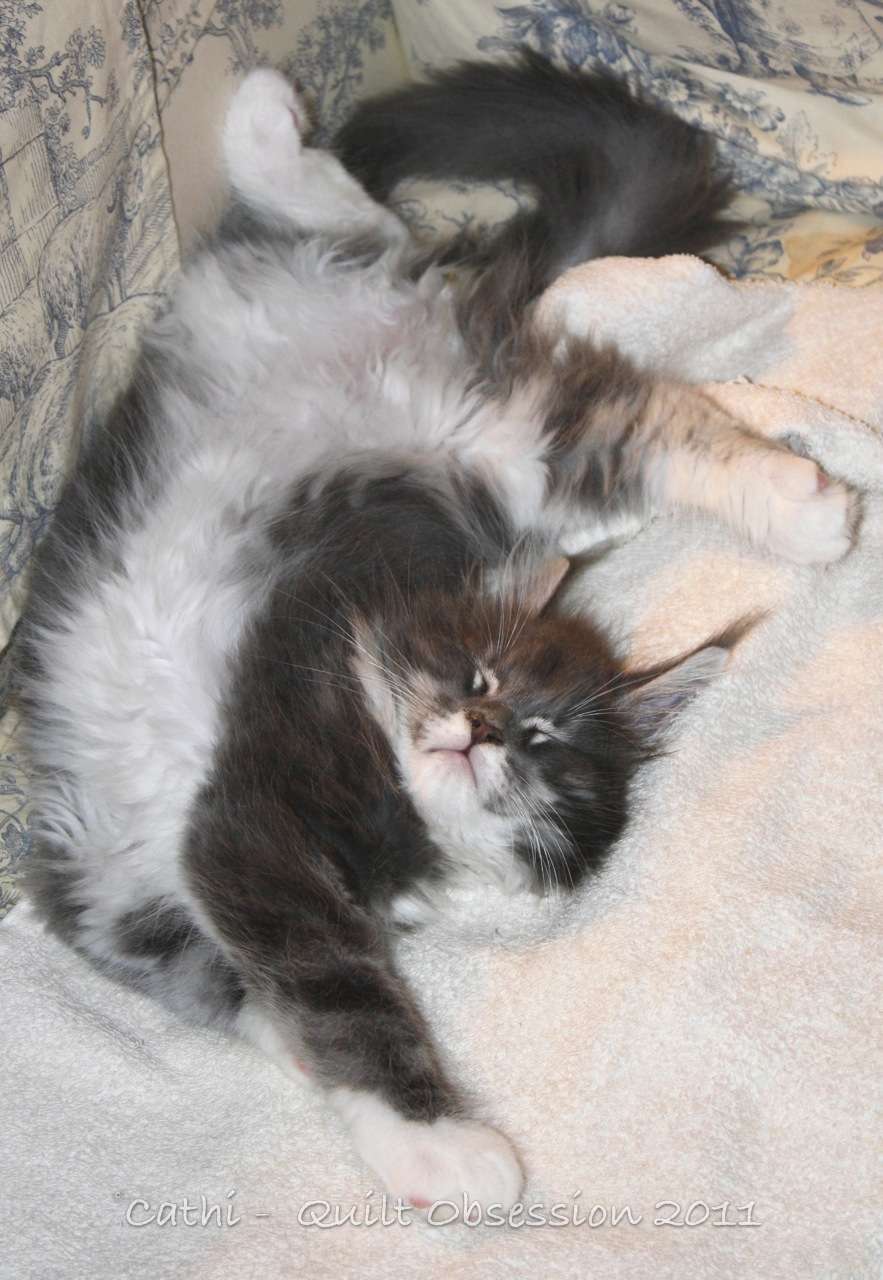 Baxter is already in his Yin Yang position! So darn cute! You need to make a grey and white block for him to chew on, poor kitty, just loves the feel of fabric like everybody else.