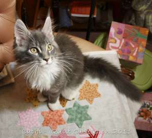 Baxter is sitting on your stars so they don’t blow away in the breeze…..what a helpful kitty!