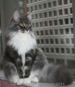 Baxter has the poise and stance of the Beefeaters outside of the Tower of London LOL! Guarding QO House from all squirrels and swirly leaves. Stunning quilt–I love watching it come together.