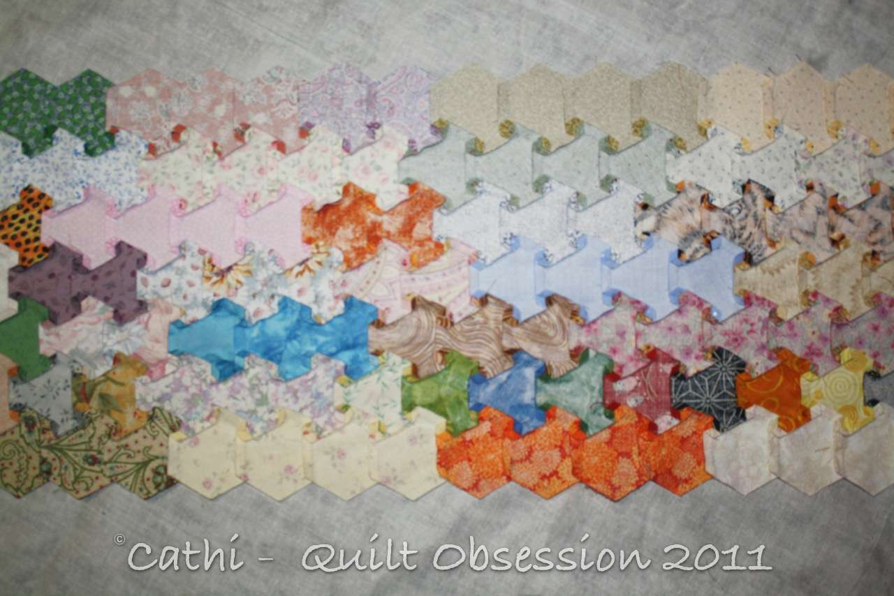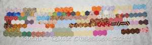It has been a very long time since I last worked on this. I made the long strips of hexagons months and months ago and had joined about 5 of them and then it sat. And sat and sat some more. Over the past week or so I have spent some time on it and have joined a couple more of the strips to what was already joined. It’s nice easy stitching, which is just perfect for some evenings.