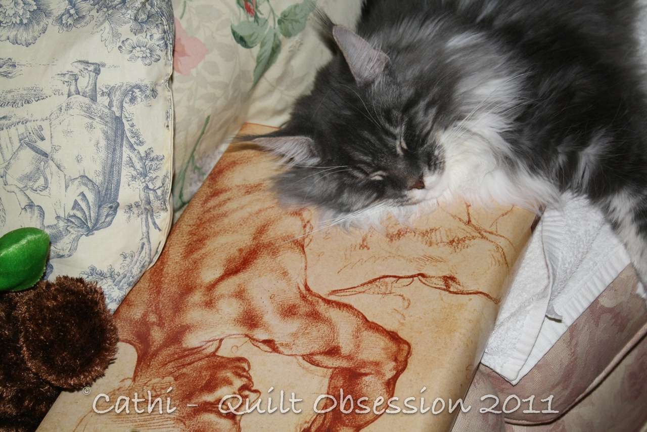 That’s a lot of pieces in each block…..but these are large blocks, right? I would hate to think they finished at 8in square! Obviously being Head of the House is tiring, and a kitty needs to rest occasionally.
