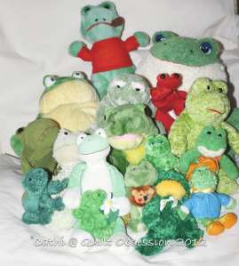 Frogs? Did you make some of them or you just an avid collector? We have live ones that I could send to you. In the summer there are tiny ones that climb on the outside of the house and stick to the windows looking in due to the lights.