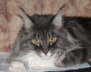 Baxter loves to lie on Mr. Q.O.’s cryptic crosswords. Mr. Q.O. captioned this one, “Hmm …” I think he was just showing off his lynx tips.