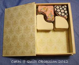 The little book box is slowly getting filled up with the pieces. I counted the previously finished blocks and I had, before I realized I could use Inklingo to finish this quilt, made 307 blocks. So only 525 to go.