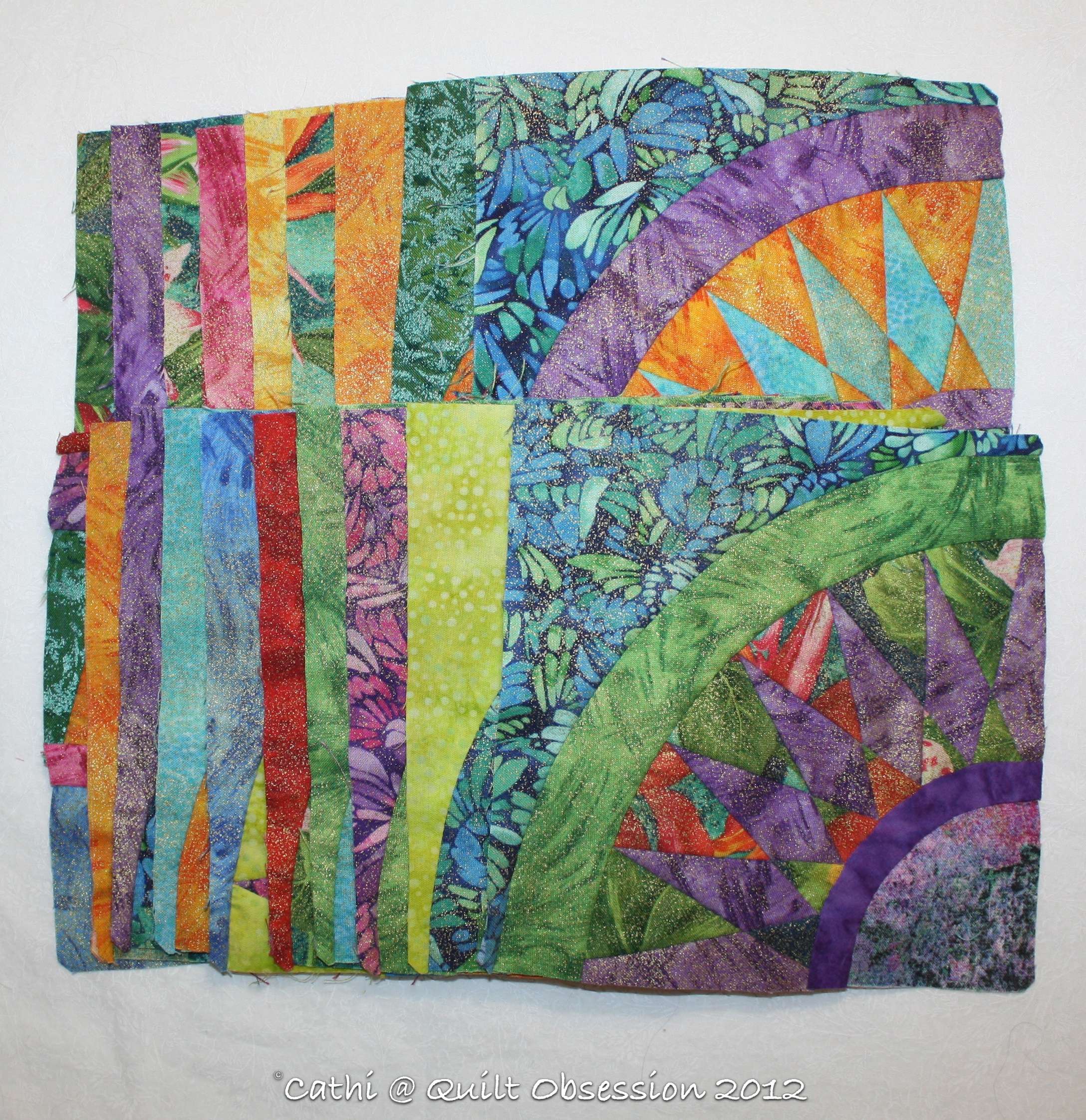 But having had another look at them all, I’m now thinking that some of these are going in the group for the third New York beauty quilt and that the Tiffany Lamp group still needs a few more to have the 20 blocks I had planned for it. If I can put up some sort of design wall this weekend I’ll put the blocks up, have a good look and make a decision. It’s no hardship as I’d happily make NYB blocks for a long, long time!