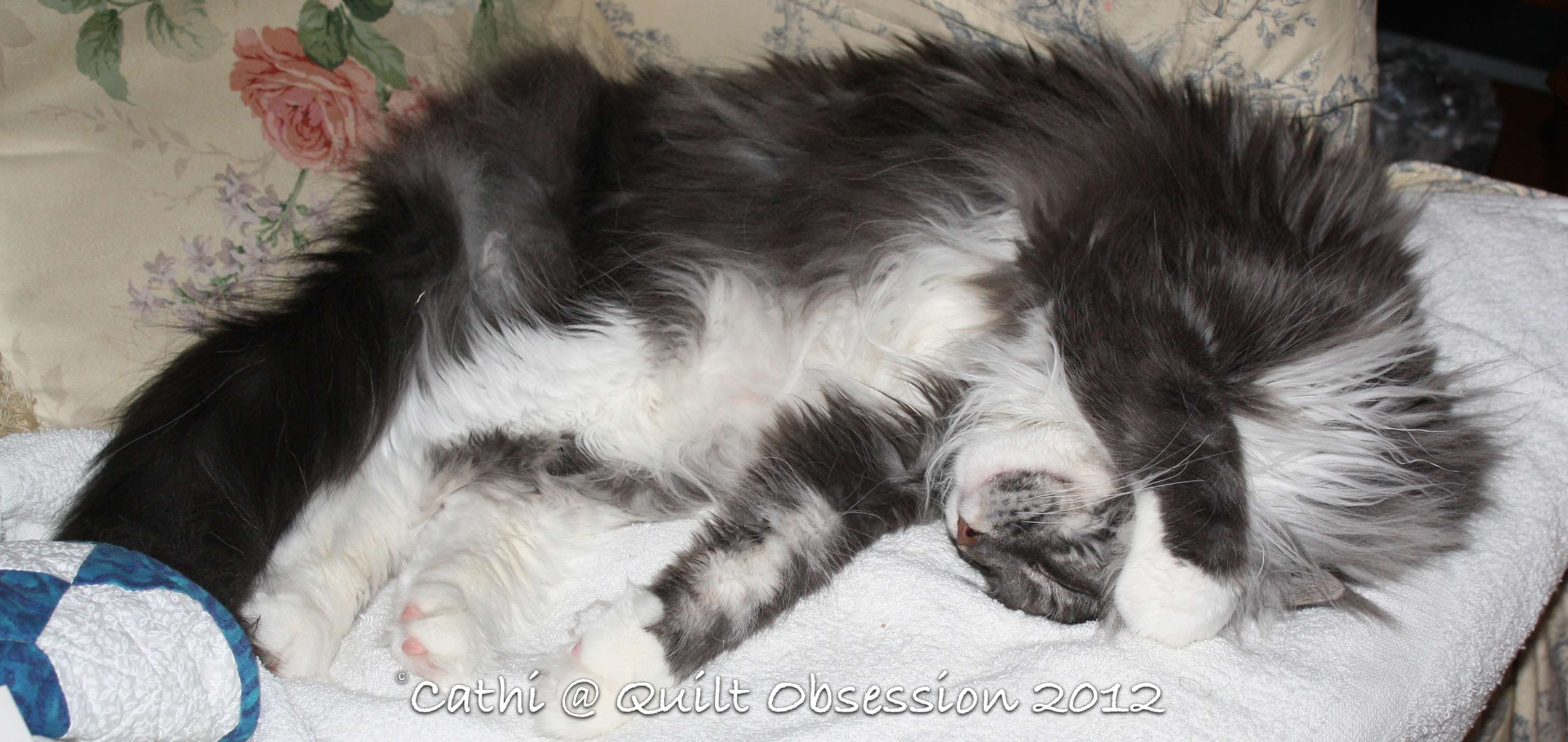 Lovely batiks–can’t wait to see what you’re going to do with them. Lucky you Baxter isn’t bothered by thunder. Try having 52lbs of quivering, shaking, panting spotted dog leaning against you or on top of you……yeah, it was a LONG night……..on top of that, he’s all worked up because the house is torn up with all sorts of home improvement projects and packing going on in preparation for selling our home……..I’ll take a nice laid back kitty right about now……