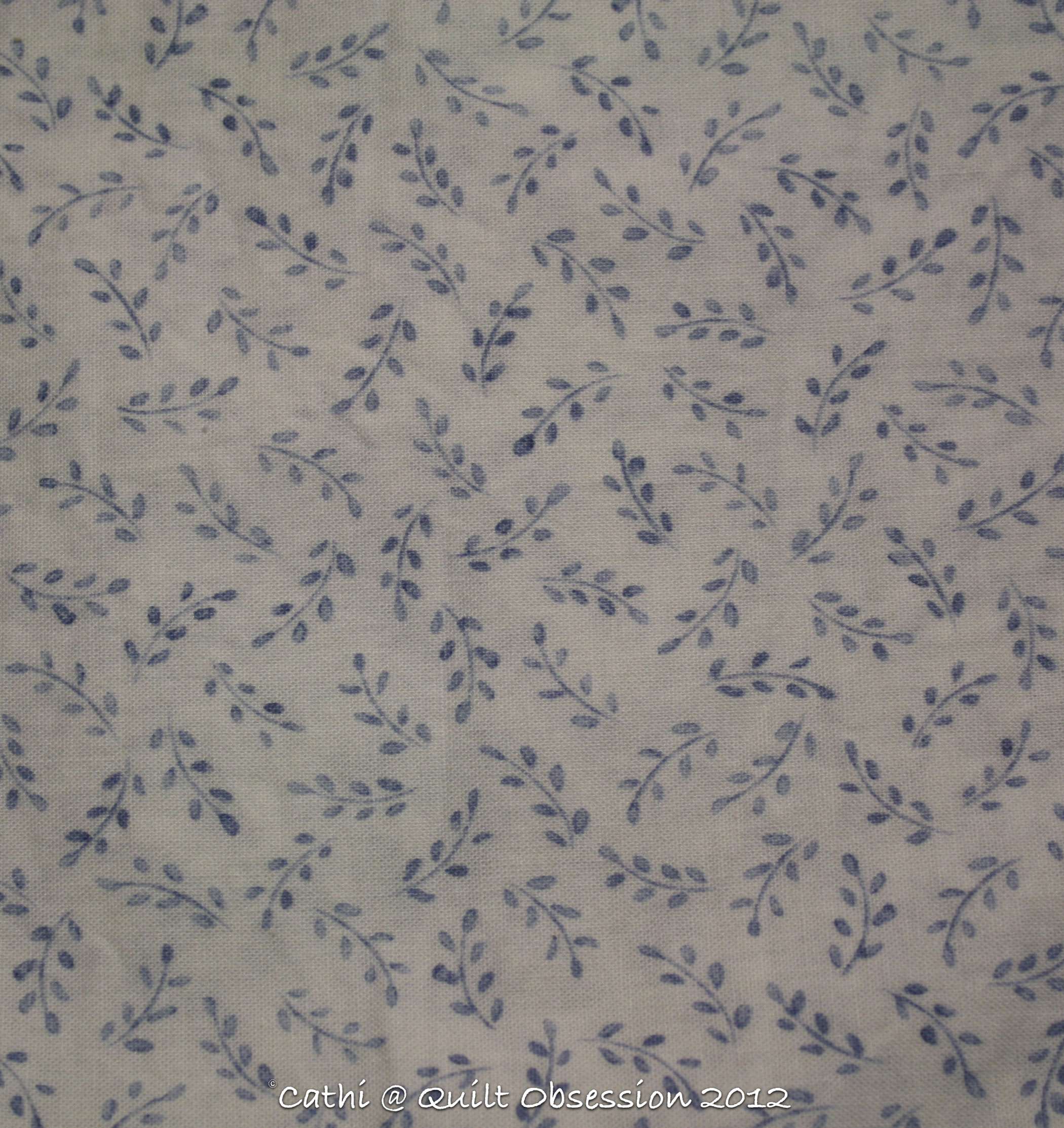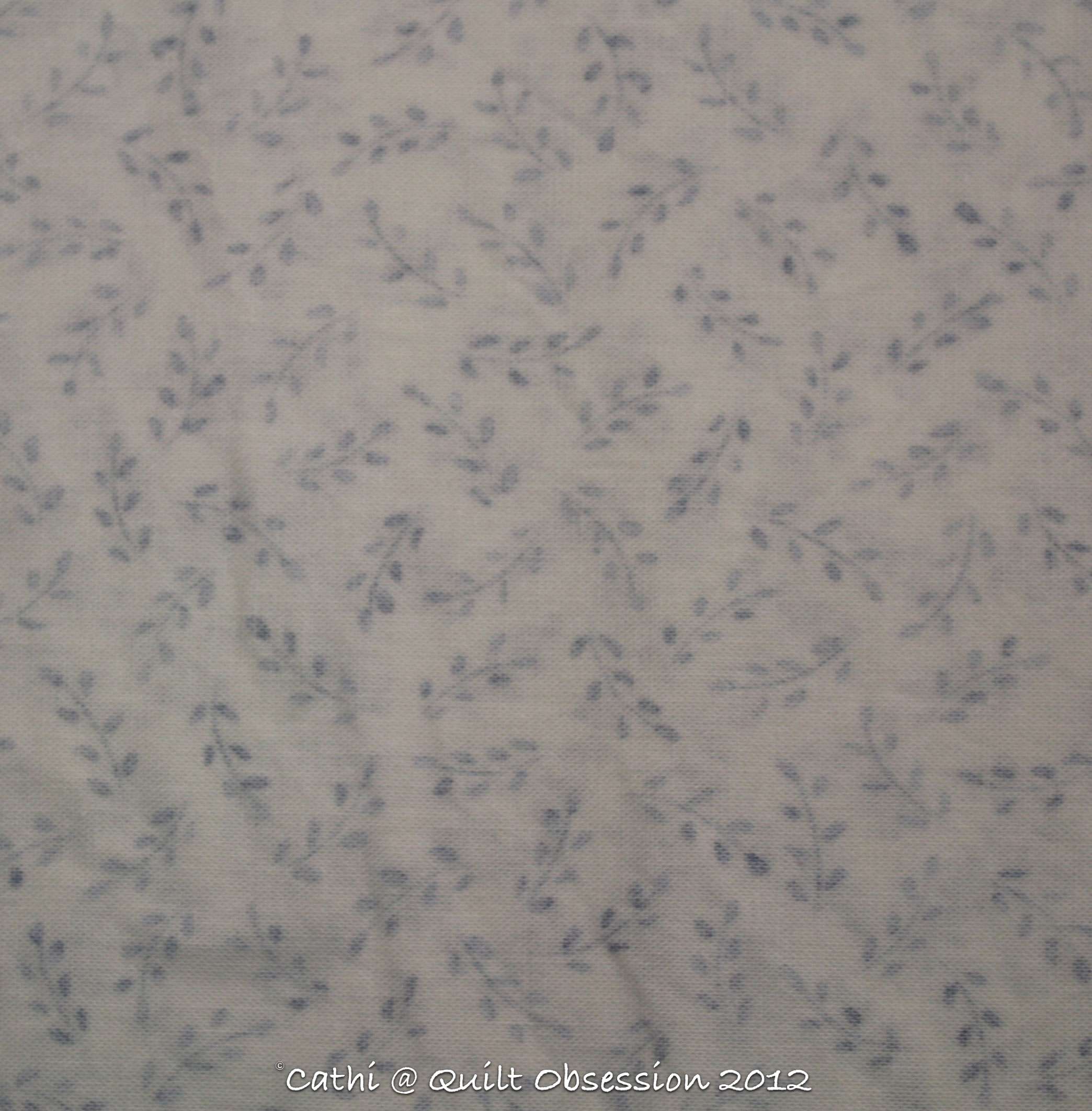 What I was really looking for was this – a white with a faint blue print. This is the “right” side of the fabric, which has a darker print than I wanted.