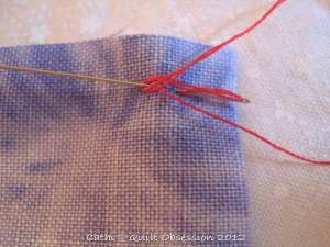 So I started thinking about it and decided to try it at the beginning of a seam as well. I’ve been using it now for a week and am thrilled. No more bulky knot at either end of my seams. Just a lovely flat knot that really feels like nothing more than a backstitch. No little bump in the seam. Yeah, okay — I admit it, I’m really picky about those bumpy knots. They’ve always bugged me. Even when using an heirloom thread, I was aware of that bumpy knot.