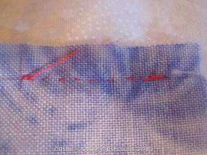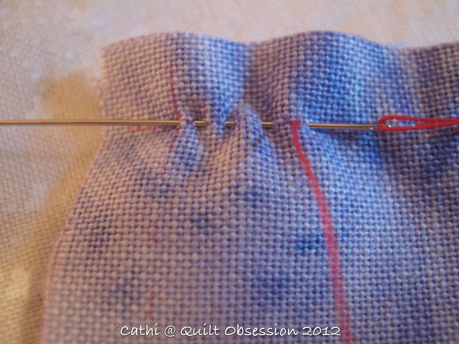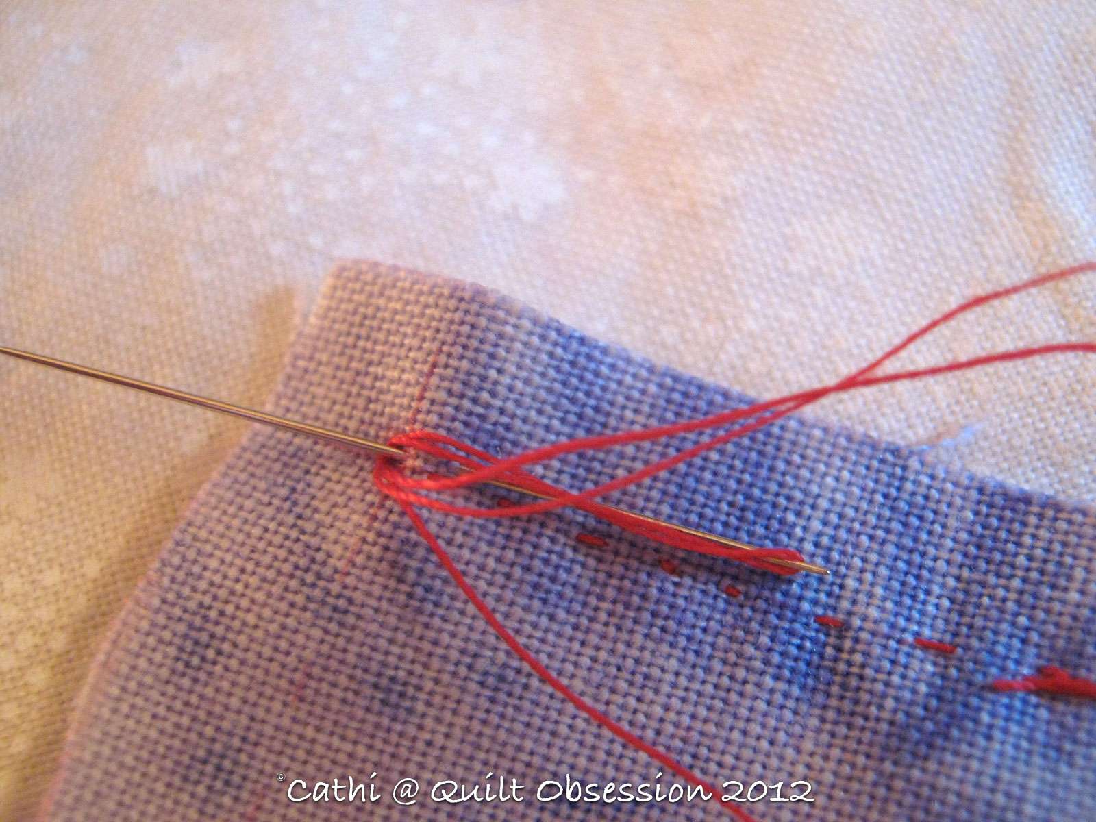 So how to do it? It’s easy. Instead of making a quilter’s knot to begin your line of stitching, just bring the threaded needle through. Leave a slight tail.