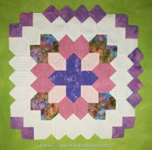 First up is the Patchwork of the Crosses. I added the outer cream hexagons and the purple squares to this block last night, to get a sense of how long it would take. Not long. There are only seven blocks left that need the outer cream hexagons and purple squares. Then it will just be a matter of figuring out placement, adding the outer edges and the 2″ squares that will be needed at the block intersections. So this one is definitely in the running. I’d love to finish my POTC quilt top as the blocks have been languishing far too long.