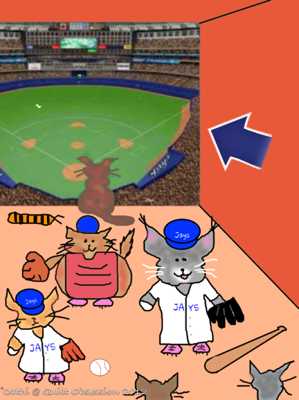 There seems to be a blockbuster trade in the works that is bringing a ton of talent to the Blue Jays. So last night we were reading everything we could find on the internet about it and that inspired today’s Baxtertoon. Baxter and his kitty baseball player friends are all excited about next year now with this trade.