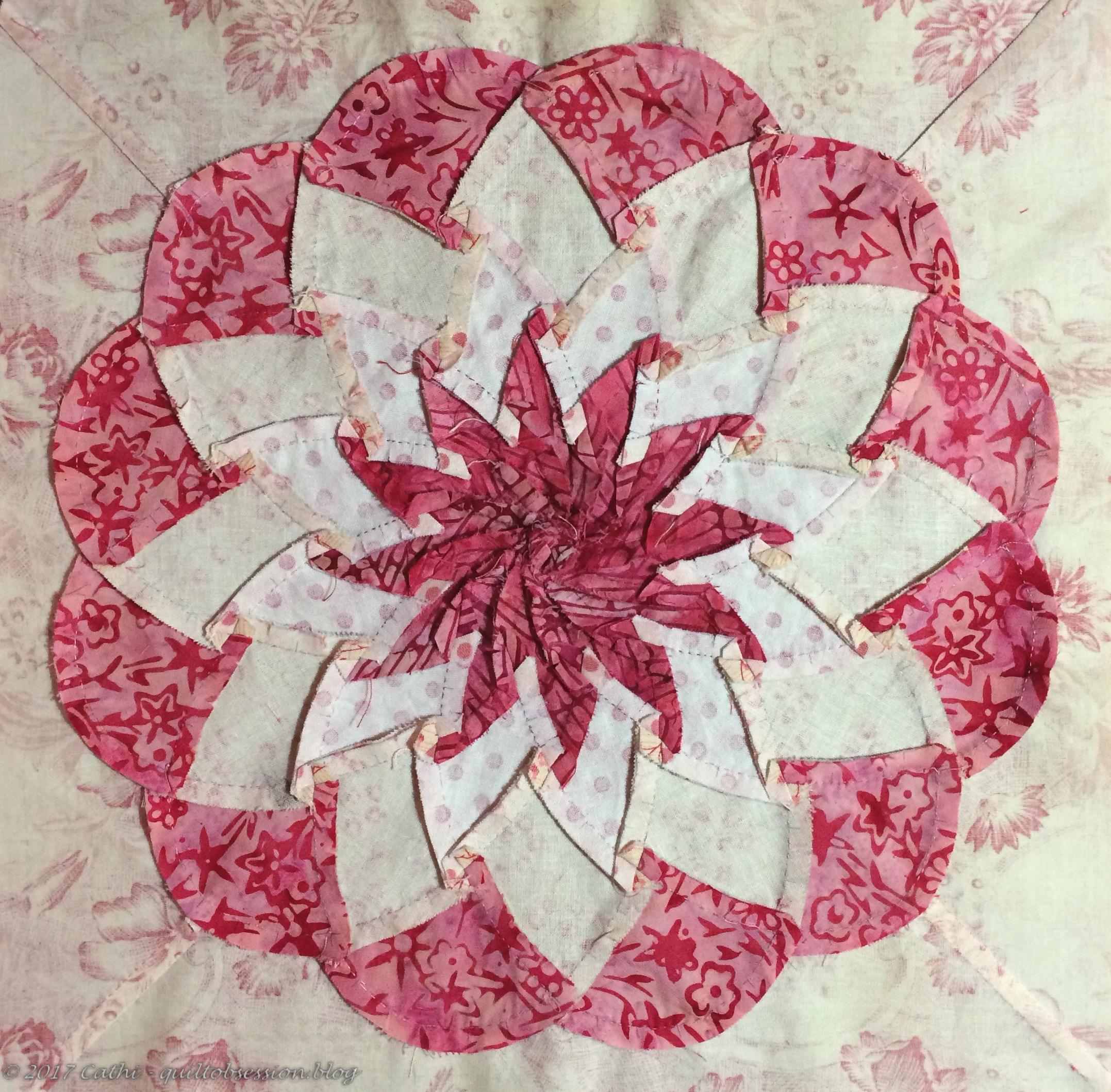 Back of Pink Ribbon Flower blockwtmk Published July 14, 2017 at 2155 × 2118 in Ribbons of Flowers Garden Quilt, Block 2 Next →