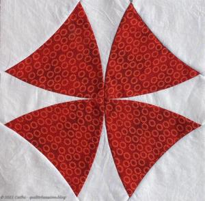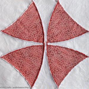 I sewed that block by hand but am thinking about making a lap quilt made of the 12″ blocks and when I do, I’ll use the sewing machine. The curves are so gentle that it will be easy to sew this by machine.