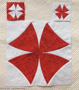 The photo with the two sizes shown together sure gives me perspective on the sizes, Cathi! Cute block, and I love the red and white! 🙂