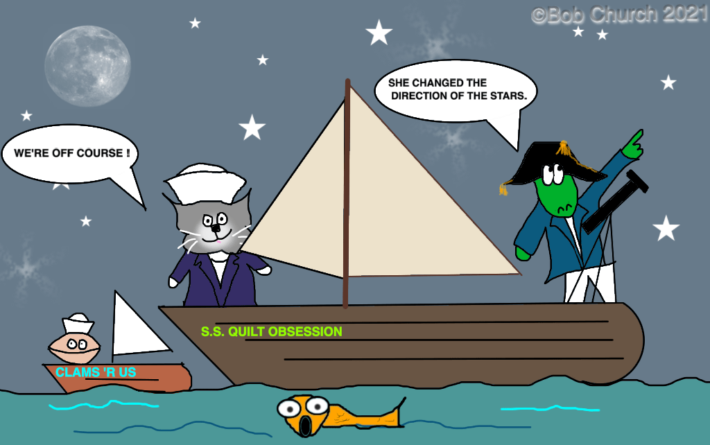 1. So easy to blame someone else when you go “off the rails:”. Hope the crew found the right star to steer by!!! Love those blocks, and to have the star point at a different place adds to their beauty.